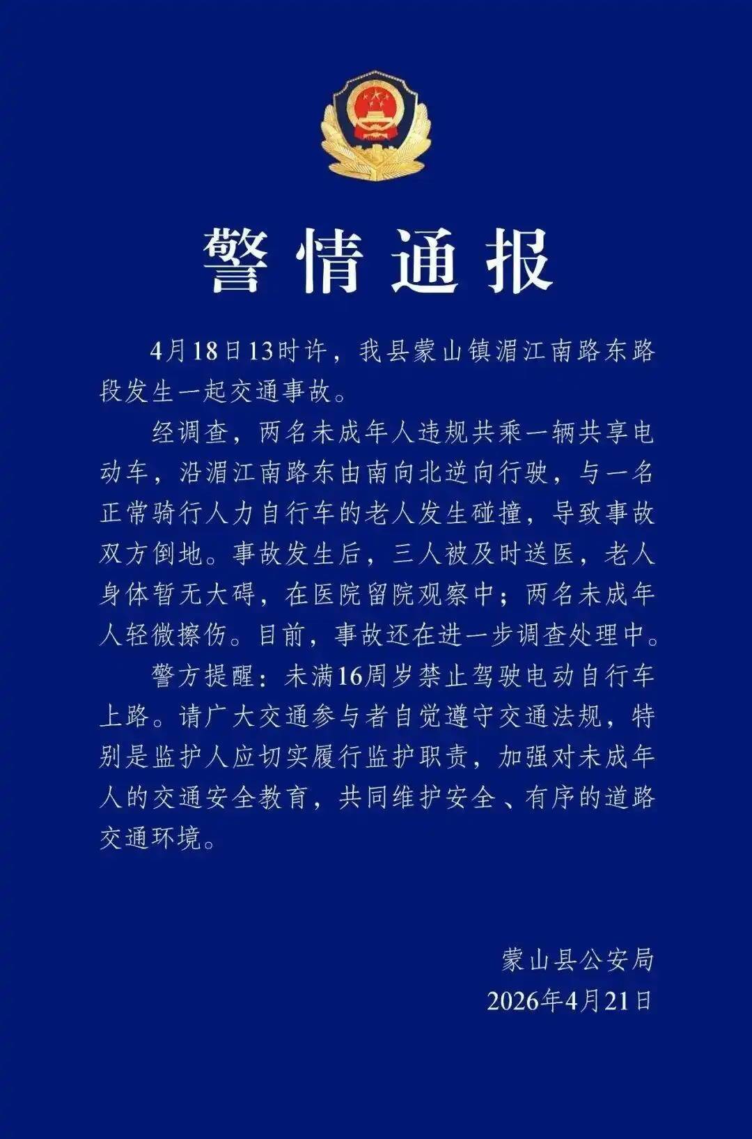 创牛配资APP下载 警方通报“2名未成年女孩骑电动车逆行撞昏老人”:老人身体暂无大碍,在医院留院观察,两名未成年人轻微擦伤 创牛配资APP下载 来源:股票杠杆原理 网站:盛康优配 日期:2026-04-22 04:14:39 查看:107