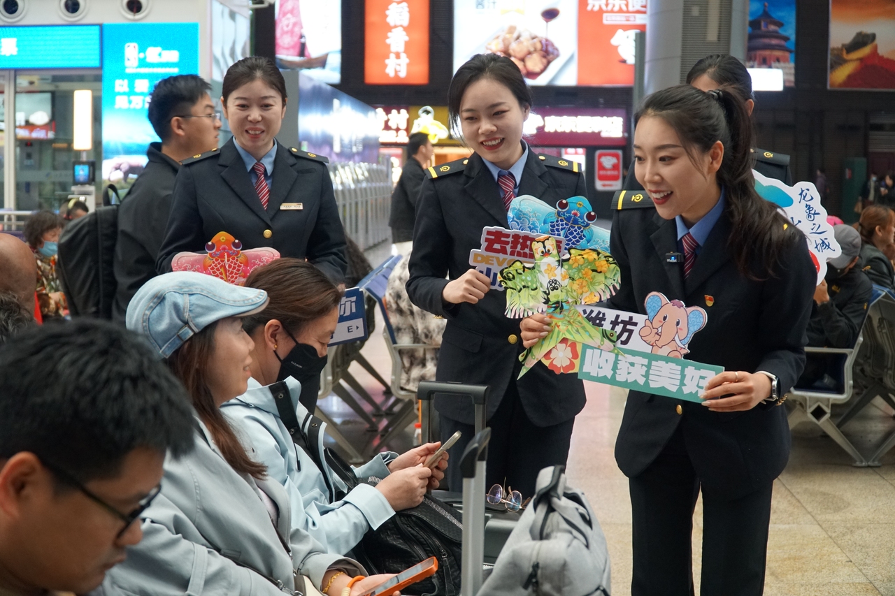 为保障风筝会期间旅客顺畅出行,北京南站、潍坊站和沿线车站提前部署、细化措施,全方位筑牢服务保障防线。提前安排专人对接协调,优化客运组织方案,增派引导宣传人员,加强现场秩序维护;增设风筝会绿色通道,为团体及散客提供专人引导、快速进站服务;服务台增派志愿者,提供多语种咨询、出行线路规划等便民服务。同时,铁路部门与地方交通协同联动,在潍坊站等枢纽开通直达风筝放飞场公交专线,打通旅客出行“最后一公里”。(工人日报客户端记者 田国垒 通讯员 许潇 郑思瑶)