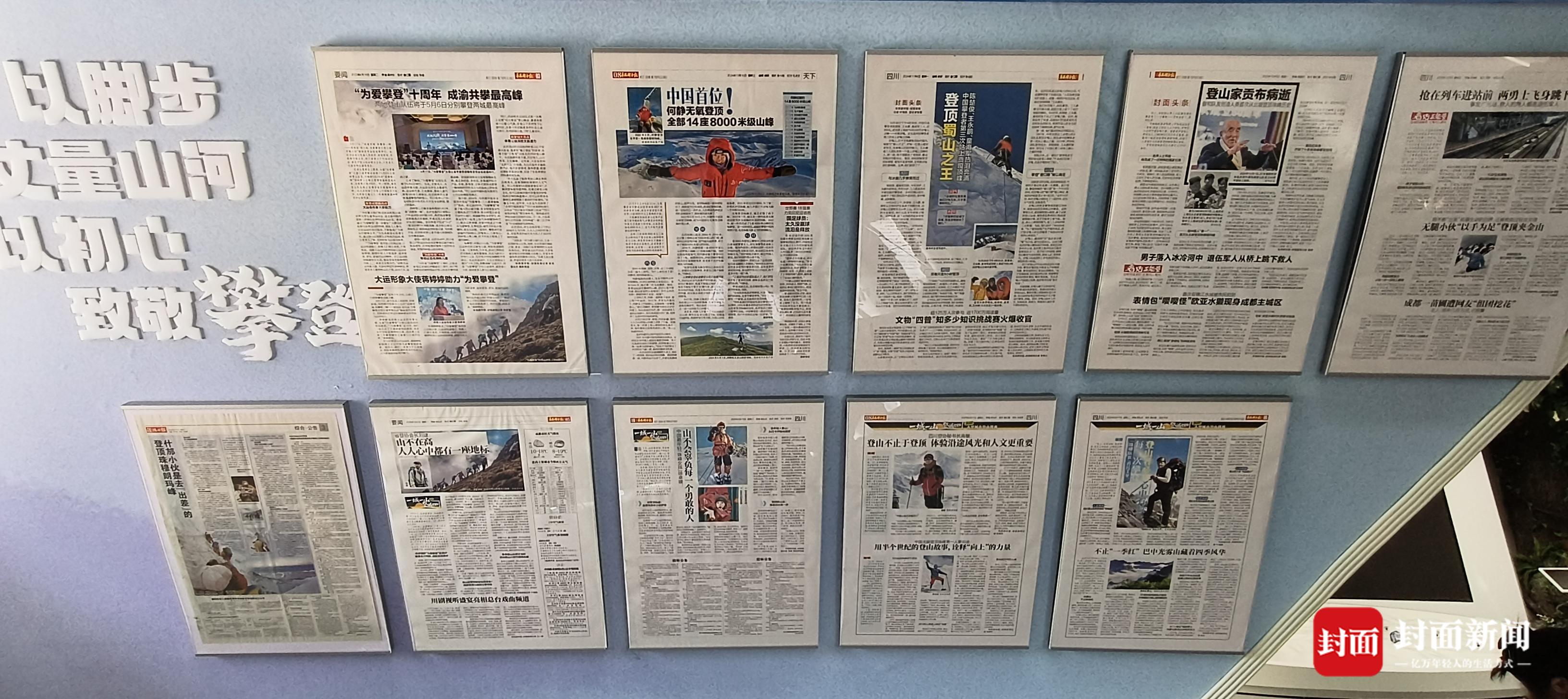 在人物故事展区和登山物品展示区,摆放着登顶珠峰60周年纪念服,而一段段登山故事,讲述着人与山之间的羁绊。1960年5月25日,王富洲、贡布、屈银华首次从北坡登顶珠峰;2008年5月8日,奥运火炬在世界最高峰峰顶点燃;中国最年轻“珠峰女孩”许卓媛、无腿老人夏伯渝等人的登山故事和知名登山人捐赠的雪锥、老报纸、徒步鞋等“老物件”,每一件都承载着岁月与热爱,吸引嘉宾驻足了解。
